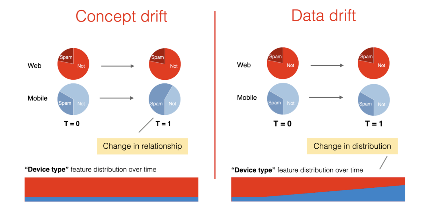 - Concept Drift: This occurs when the connection between inputs and outputs shifts over time.