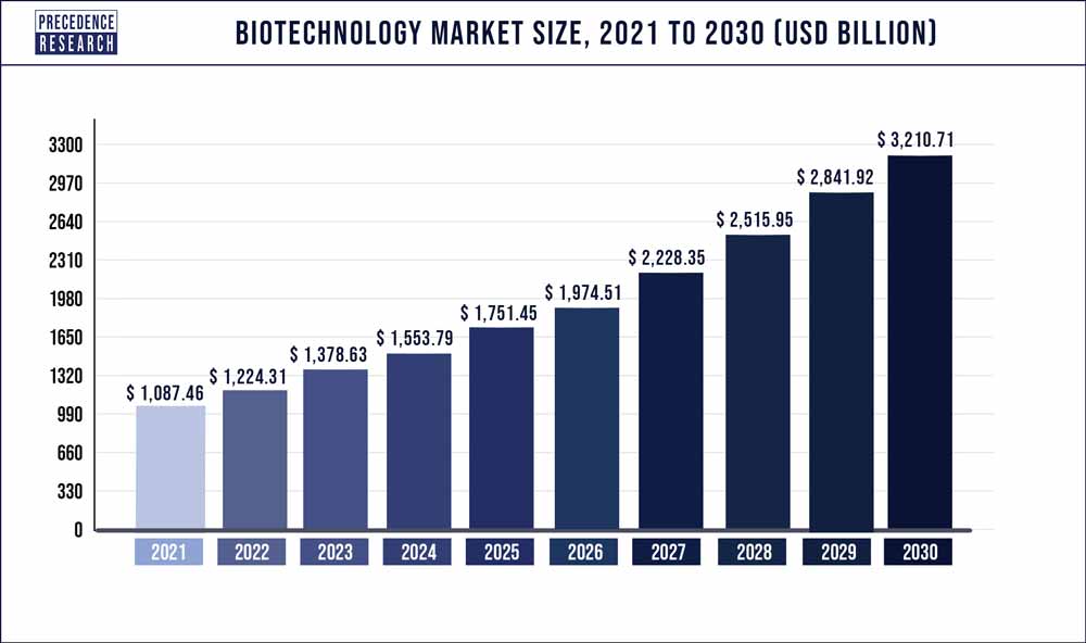 And the pace of biotechnological advancements continues to accelerate. Fueled by the growing adoption of custom healthcare software development by biotech companies and the constant need for innovation, the global biotech market was estimated at USD 1,224 billion in 2022 and is expected to be worth about USD 3,210 billion by 2030. Without further ado, let’s take a deep dive into the latest and most fascinating biotech breakthroughs that are worth your attention.