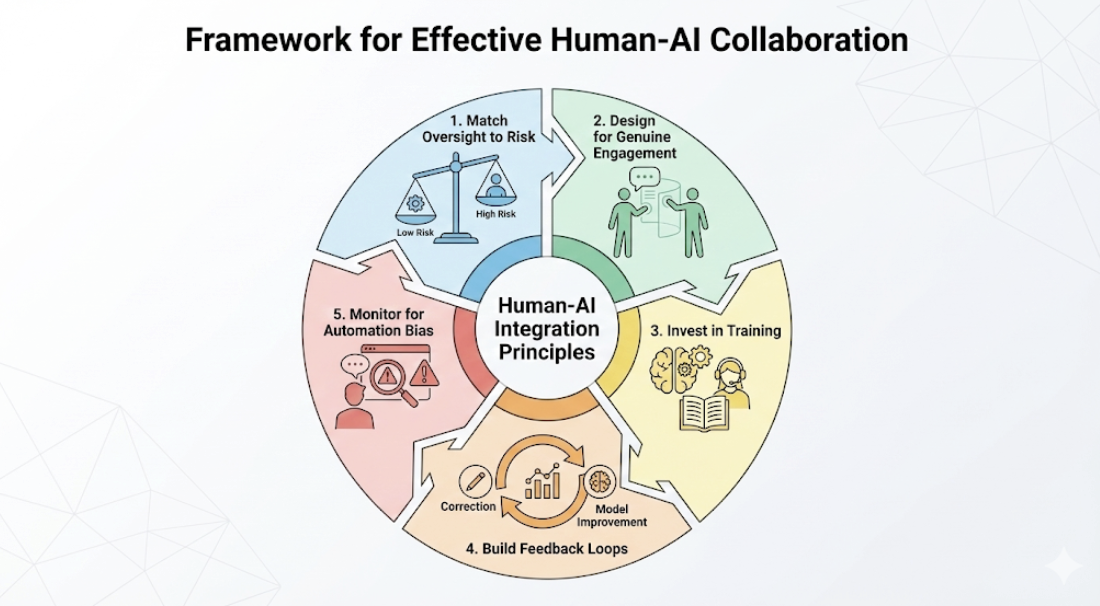 - Design for genuine engagement. Don't create a system where people just click "approve" over and over. Give them the context they need. Explain why the AI flagged a certain item and what it was thinking so the person can add real value.