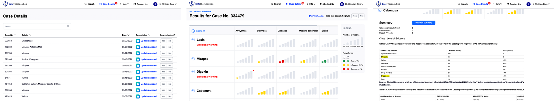 Kanda worked closely with the SafeTherapeutics team to develop front-end functionality and a new user interface for their core platform. The platform’s usability and efficiency was enhanced with a graphic display of the platform output which emphasized the frequency and highest-level of scientific evidence for any given patient problem. This enables clinician interpretation and immediate use without a learning curve:- The platform was streamlined to make it easier for clinicians to enter drug and associated problem information, resulting in increased efficiency.