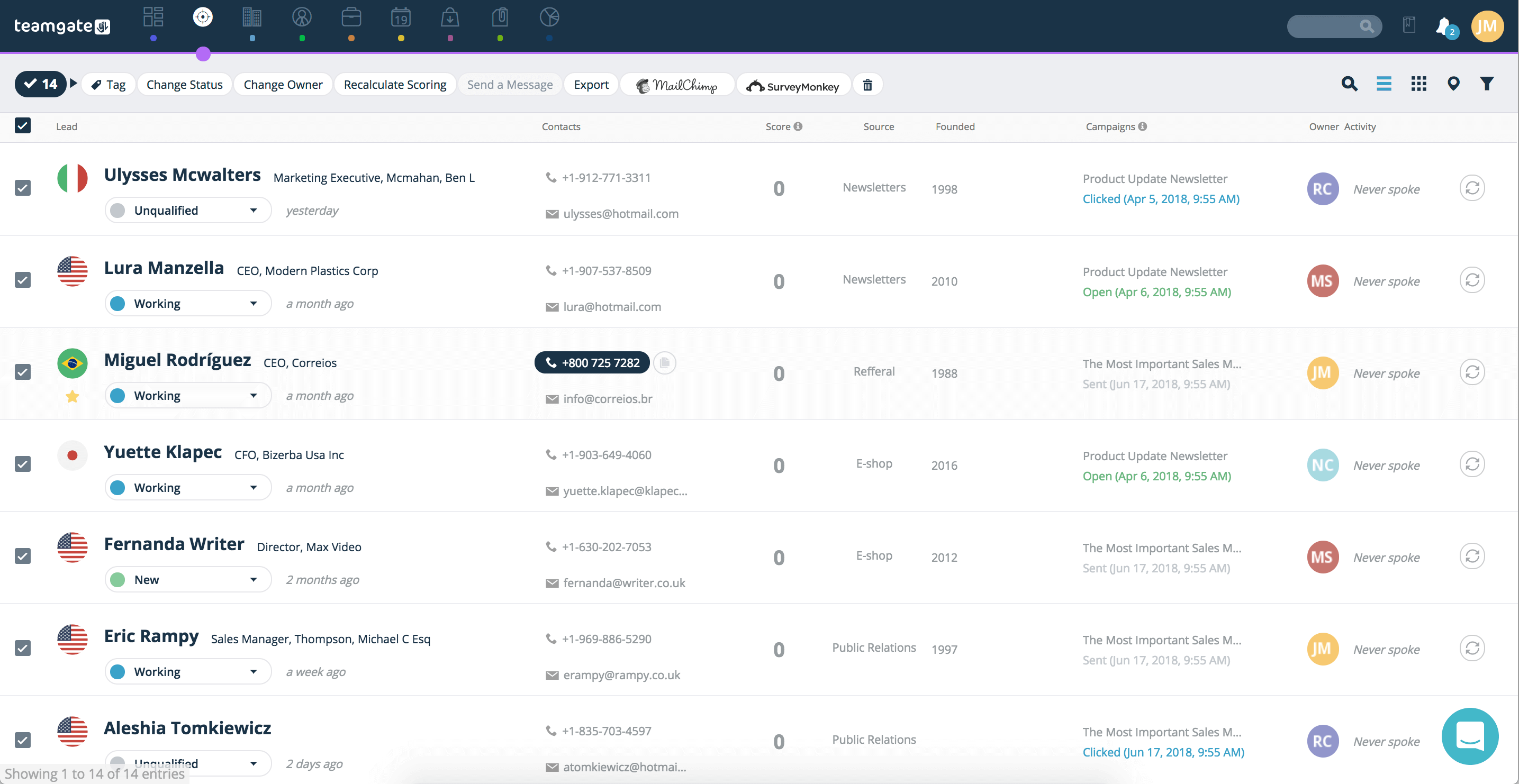 One of the most important CRM modules, lead management focuses on nurturing leads until they are turned into business opportunities. To do that, the lead management feature helps to capture leads, enrich profiles with available information and accurately score them so that sales reps would not have to waste time on leads that are less likely to convert.