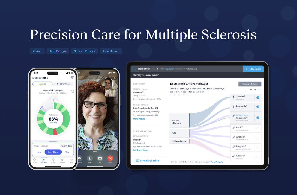 Precision Care Management Platform Octave Bioscience and DesignMap presented the first-of-its-kind platform for managing neurodegenerative diseases starting with Multiple Sclerosis (MS). The platform combines insights and analyzes data to support patients every step of the way, from tracking disease progression to optimizing treatment plans for better outcomes. The UX design team invested considerable effort to ensure the end-users’ voices played a pivotal role in shaping crucial decisions. A notable outcome of this endeavor is the inclusion of a care cycle function within the mobile app. This feature represents the time between office visits, offering support to patients in their effort to slow down the progression of the disease.